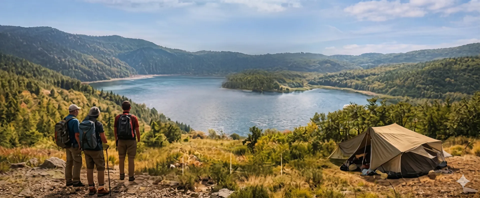 מטיילים בשביל ישראל משקיפים על נוף אגם - ליווי מסעות בשטח שביל לבן